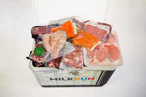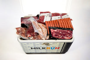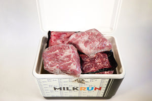 Get ready for Grilling Season with MilkRun's Ultimate Grilling Pack. The Ultimate Grilling Back comes with an original, MilkRun Coleman Cooler filled with your choice of locally- and sustainably-sourced meat, pork or seafood. Use the cooler to keep your goods cold or toss the meat in the freezer and bring your cooler along for your next outdoor adventure!